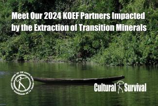 The Keepers of the Earth Fund (KOEF) is proud to announce our 2024 partnership with Indigenous communities. At Cultural Survival, we value cultivating long-term relationships with our partners by supporting Indigenous projects on issues related to community empowerment for the defense of land and autonomy; strengthening Indigenous languages, cultures, and knowledge systems; conservation of Indigenous land and livelihoods in the face of climate change; and resistance to mining as a part of the solution to the “green” energy transition.