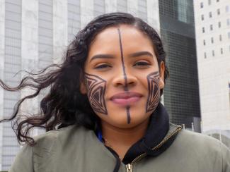 — Sabantho Aderi (Lokono-Arawak), 22, is a member of the Pakuri Tribal Territory Indigenous community in Guyana. She is an Indigenous rights activist and artist and created the first Lokono-Arawak mural consisting of her Peoples’ mythological creatures and it is located in her Tribal lands. At 18, she became the youngest woman to participate in the United Nations Permanent Forum on Indigenous Issues Project Access Global Capacity Training Program sponsored via the Tribal Link Foundation.