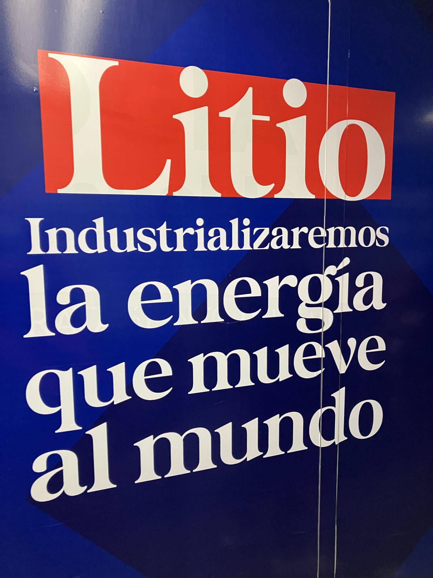 An airport billboard in Uyuni that reads, “Lithium: We will industrialize the energy that moves the world.”