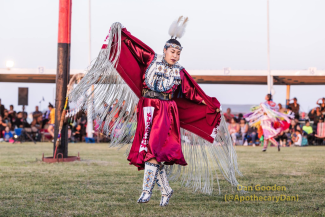 Begay was introduced to the powwow arena as a Fancy Shawl Dancer as soon as she could walk. She has been a champion dancer for 30 years, making many friends throughout her travels. She credits dancing with filling her life with happiness and many opportunities like traveling abroad, dancing at WNBA and NCAA games, and performing with country artists Montgomery Gentry and John Anderson. Her dancing was also featured in the television series “Longmire,” among other credits. Despite her busy schedule, Begay makes plenty of time for her husband, Angelo, and their two young sons.